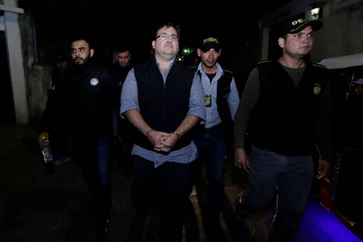 Tras haber sido capturado la noche del sábado en el municipio de Panajachel, departamento de Sololá, Guatemala, el ex mandatario llegó custodiado por policías locales y de la Interpol.