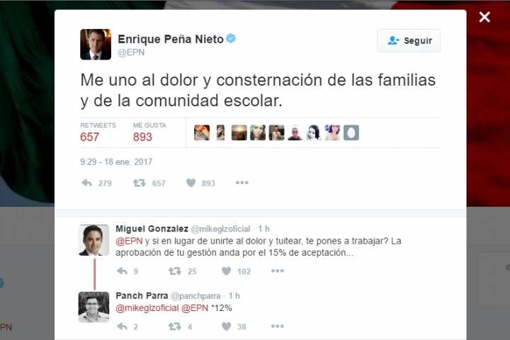 En su cuenta de Twitter, el titular del Ejecutivo Federal señaló que "como padre de familia y presidente, me duele mucho lo que pasó esta mañana en un colegio de Monterrey".