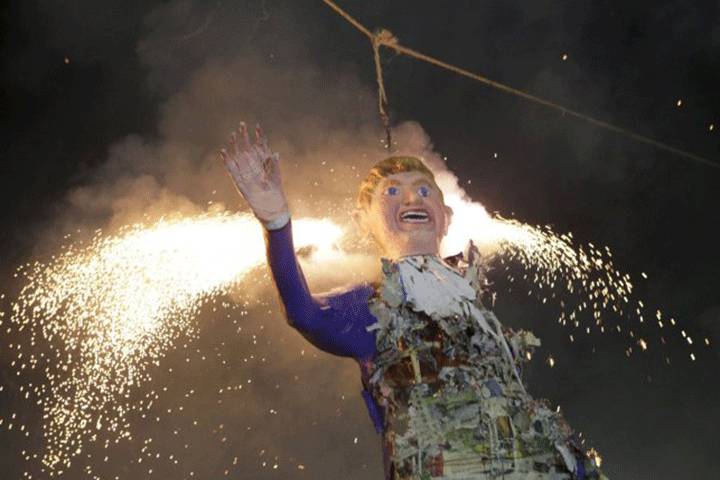 NOTICIAS 27/03/2016Queman a Donald TrumpUna figura de cartón de Donald Trump, aspirante a la candidatura republicana a la presidencia de Estados Unidos, ardió este Sábado de Gloria junto a otras representaciones durante la tradicional Quema de Judas en una popular barriada de la Ciudad de México .