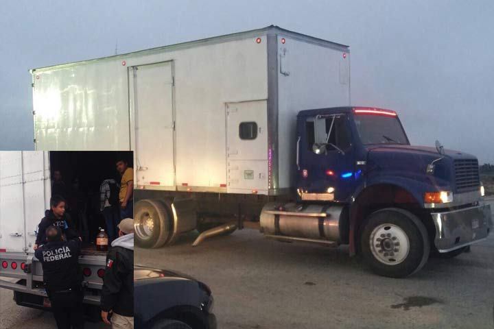 NOTICIAS 01/12/2015Policía Federal rescatan a 64 indocumentados que viajaban en la caja de un tractocamiónUn total de sesenta y cuatro indocumentados que viajaban en condiciones de hacinamiento en la caja de un tractocamión, fueron rescatados por personal de la Policía Federal en un retén implementado sobre el kilómetro 129 de la Carretera Matehuala-Saltillo, en esta localidad de Galeana, Nuevo León.