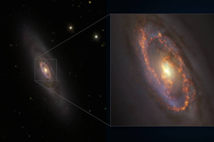 NOTICIAS 31/10/2024¡Galaxia "zombi"! Estaba "muerta" pero revivió, y podría hacerlo de nuevoLa galaxia NGC 1386 estaba "muerta" pero ahora están naciendo estrellas en un anillo alrededor de su centro, a pesar de no tener material para formar nuevas estrellas ahí. Observaciones recientes en ondas de radio sugieren que la galaxia toma material de sus regiones exteriores para formar estrellas cerca de su centro de forma repetitiva. ¡Es una "zombi" recurrente!