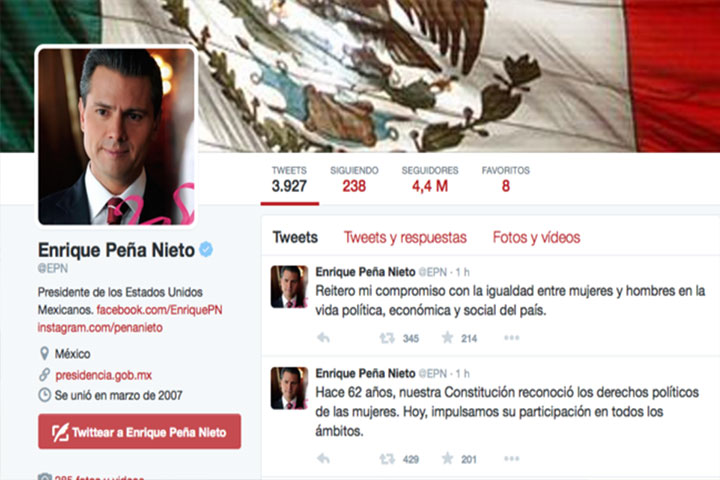 El presidente Enrique Peña Nieto refrendó su compromiso con la igualdad entre mujeres y hombres en la vida política, económica y social del país. El titular del Ejecutivo federal afirmó que en la actualidad se impulsa la participación de las mujeres en todos los ámbitos. "Hace 62 años, nuestra Constitución reconoció los derechos políticos de las mujeres. Hoy, impulsamos su participación en todos los ámbitos." "Reitero mi compr...