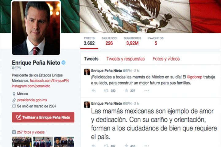 En su cuenta oficial de Twitter @EPN, el Ejecutivo federal escribió: "Las mamás mexicanas son ejemplo de amor y dedicación. Con su cariño y orientación, forman a los ciudadanos de bien que requiere el país".