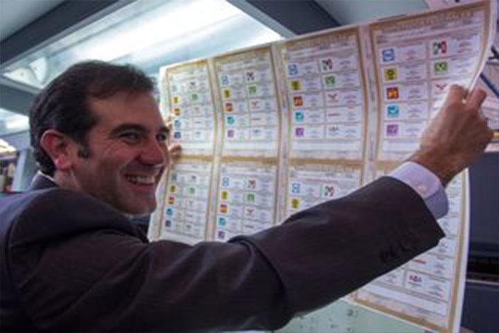 NOTICIAS 06/04/2015Inicia producción de 87 millones de boletas electoralesEl consejero presidente del Instituto Nacional Electoral (INE), Lorenzo Córdova dio a conocer que se inicia la producción de las boletas electorales para las elecciones del próximo domingo 7 de junio, mismas que se imprimirán en los Talleres Gráficos de la Nación.