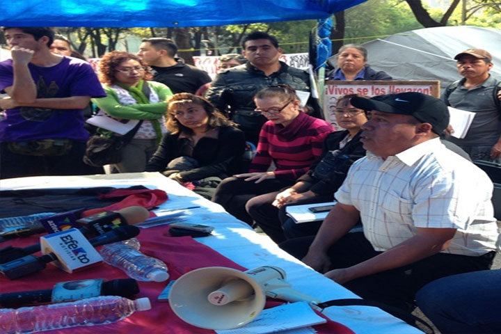 NOTICIAS 29/12/2014Anuncian plantón por normalistas de Ayotzinapa en Los PinosSin la presencia de familiares o estudiantes de la Normal Rural de Ayotzinapa, los grupos que sostienen el plantón indefinido en el camellón de avenida Reforma, encabezado por el llamado Frente Oriente del Distrito Federal, al pie de las instalaciones de la Procuraduría General de la República, refrendaron su exigencia de presentación inmediata y con vida de los 43 normalistas rurales desaparecidos en Iguala, Guerrero, pues las autoridades "... Ver más...