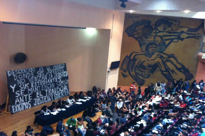 NOTICIAS 26/10/2014En apoyo a normalistas, universitarios llaman a paro nacionalLa tercera Asamblea Interuniversitaria en apoyo a los normalistas de Ayotzinapa acordó convocar a un paro nacional del sector educativo para el próximo 5 de noviembre, además de movilizaciones a nivel nacional en coordinación con los trabajadores de la educación y avanzar hacia un paro y movilizaciones que se extiendan a otros sectores sociales.