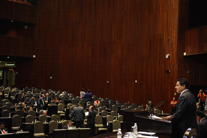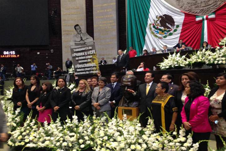 El salón de plenos de la Cámara de Diputados se lleno de flores y símbolos de luto, con los que la izquierda rechazó el avance del último paquete de leyes secundarias en materia energética.