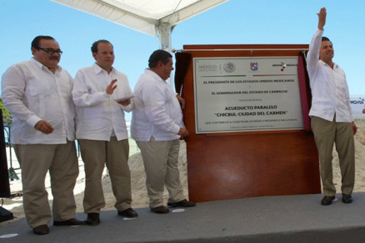 El Presidente de la República, Enrique Peña Nieto, inauguró hoy el acueducto Chicbul-Ciudad del Carmen, una obra de gran ingeniería mexicana, con la cual se garantiza el suministro diario de agua potable, las 24 horas, para los habitantes de Ciudad del Carmen. Aseguró que el acueducto tiene una importante inversión pública proveniente de Petróleos Mexicanos, CONAGUA y el Gobierno del estado, de más de mil millones de pesos, que hará po...