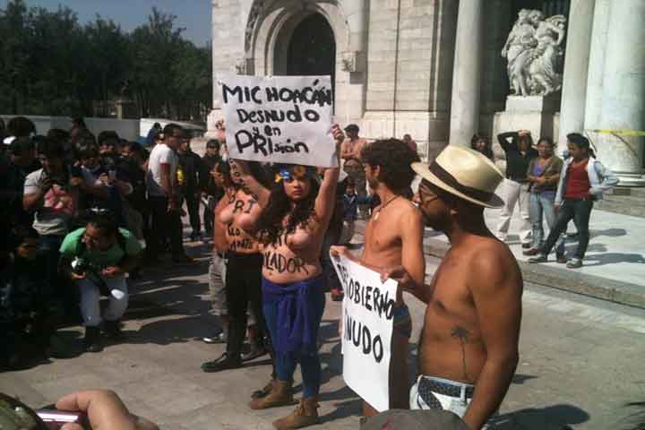 Protestan desnudos en apoyo a autodefensas