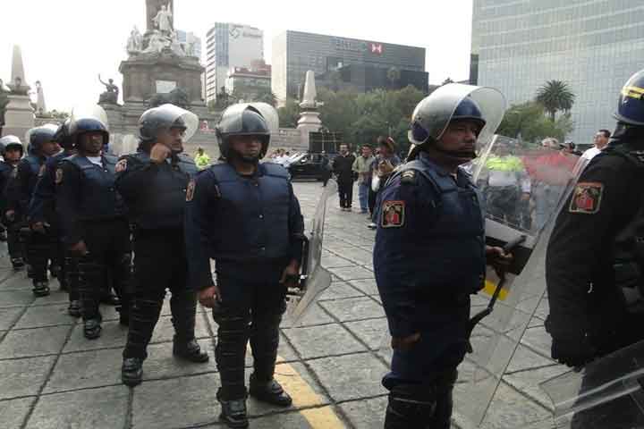 Convocados por una organización estudiantil, alrededor de 100 personas intentaron realizar una marcha por los carriles centrales de Paseo de la Reforma para expresar su apoyo a los grupos de autodefensa que operan en Michoacán, pero fueron replegados hacia la banqueta por granaderos de la Policía capitalina. Los manifestantes que portaban pancartas contra el grupo delictivo "Los Caballeros Templarios" y contra la decisión del gobierno fede...