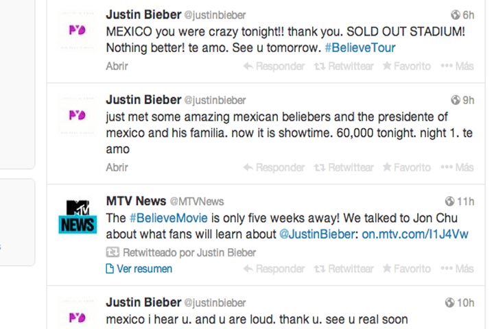 NOTICIAS 19/11/2013Justin Bieber dice que se reúne con EPN, Presidencia lo niegaLa Presidencia de la República negó que el titular del Poder Ejecutivo, Enrique Peña Nieto, haya sostenido reunión alguna con el cantante canadiense Justin Bieber.
