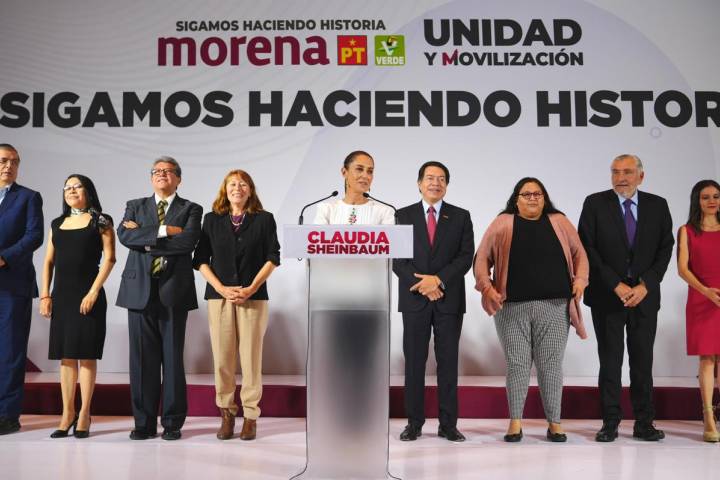 NOTICIAS 29/02/2024Claudia Sheinbaum presenta su equipo de campaña.La doctora Claudia Sheinbaum Pardo, candidata a la Presidencia de la República por la coalición Sigamos Haciendo Historia (Morena-PT-PVEM) presentó al equipo que coordinará su campaña rumbo a la elección del próximo 2 de junio.