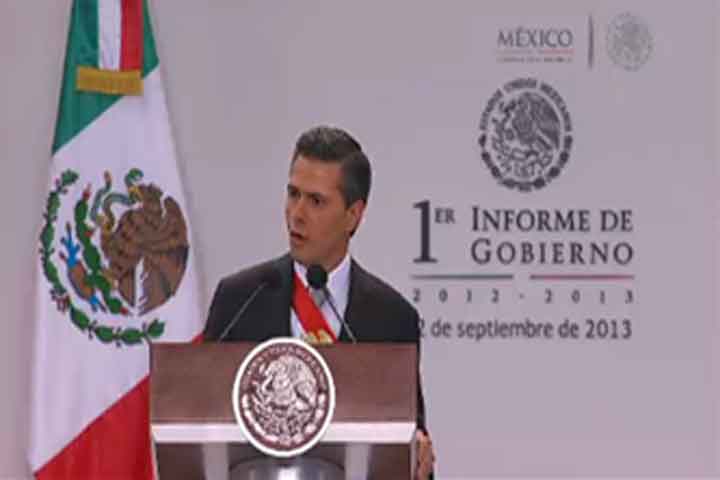 NOTICIAS 02/09/2013México tiene rumbo: Peña NietoEl presidente Enrique Peña Nieto destacó que en los primeros nueve meses de su gobierno se han logrado importantes avances como las reformas en materia de competencia, la educativa y la de telecomunicaciones, además de que se avanza hacia la reforma hacendaria y en seguridad pública.