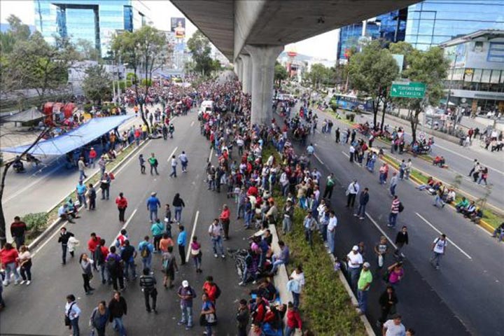 Integrantes de la Coordinadora Nacional de Trabajadores de la Educación (CNTE) bloquean la circulación en carriles centrales en ambos sentidos de Paseo de la Reforma, así como avenida Insurgentes desde la Glorieta del mismo nombre hasta San Cosme.