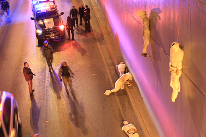 De los 5 cuerpos, tres estaban colgados del puente y dos tirados en el piso; los 5 cuerp... Ver más...