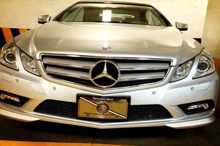 NOTICIAS 15/02/2013Un detallito de lujo insignificante en el estacionamiento de San Lázaro Luego de que el diputado panista Juan Pablo Adame publicó en Twitter una foto de un auto Mercedes Benz que portaba una placa con el logotipo de la Cámara de Diputados en lugar de placas de circulación, el priísta José Rangel aseguró que el auto es una pieza de colección y pertenece a su hijo.