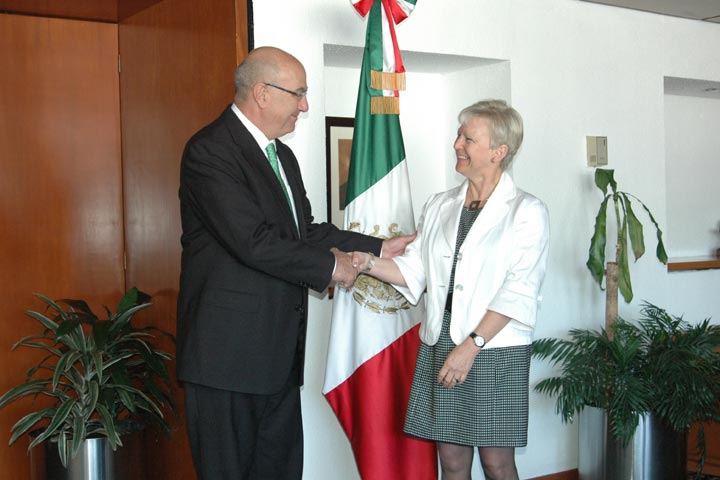 NOTICIAS 16/02/2013Mexico fortalece alianzas con la Union EuropeaEl Secretario de Medio Ambiente y Recursos Naturales, Juan José Guerra Abud, se reunió con la Embajadora Marie Anne Coninsx, Jefa de la Delegación de la Unión Europea en México, para tratar temas de cooperación prioritarios en materia ambiental para México y la Unión Europea como cambio climático, crecimiento verde, transporte limpio, residuos, agua, biodiversidad y bosques.
