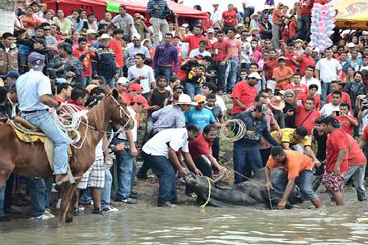 NOTICIAS 02/02/2013Muere toro ahogado en fiestas de TlacotalpanEl tercer toro de seis del embalse de Tlacotalpan murió ahogado este a orillas del Río Papaloapan.