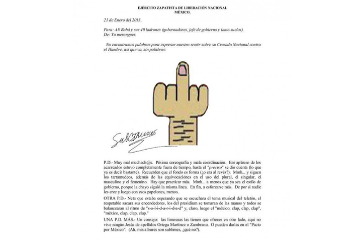 NOTICIAS 22/01/2013No queremos limosnas, responde EZLN a EPNHoras después del acto encabezado por el presidente Enrique Peña Nieto y la secretaria de Desarrollo Social, Rosario Robles, en que presentaron el programa de lucha contra la pobreza en Chiapas, el subcomandante Marcos difundió un nuevo comunicado en el que advierte que "las limosnas" tienen que otorgarlas en otro lugar.