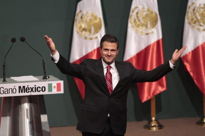 NOTICIAS 30/08/2012Priístas celebran por Twitter la inminente designación de Peña como Presidente de MéxicoEl PRI nacional y el coordinador de la campaña de Enrique Peña Nieto, Luis Videgaray, celebraron en redes sociales el reconocimiento de Enrique Peña Nieto como presidente electo inmediatamente después de ocurrida la votación de los magistrados del Tribunal Electoral del Poder Judicial de la Federación.