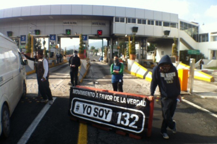 NOTICIAS 31/08/2012Miembros de #YoSoy132, en forma de protesta, permiten a los automovilistas pasar caseta sin pagarIntegrantes del Movimiento #YoSoy132 permitieron que los vehículos que transitaban a la altura del kilómetro 23+500 en la carretera México-Cuernavaca pasaran la caseta de cobro sin pagar los respectivos 95 pesos que en ésta se cobran.