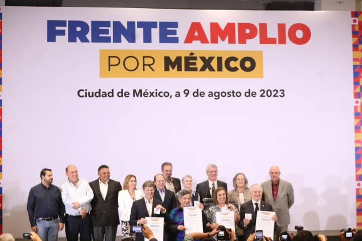 NOTICIAS 09/08/2023Xóchitl, Beatriz, Santiago y Enrique los elegidos.Este miércoles 9 de agosto, el Frente Amplio por México (FAM) presentó a las y los cuatro finalistas que cumplieron los requisitos de sumar por lo menos 150,000 firmas de apoyo repartidas en al menos 17 estados para coordinar esta alianza rumbo a las elecciones de 2024.