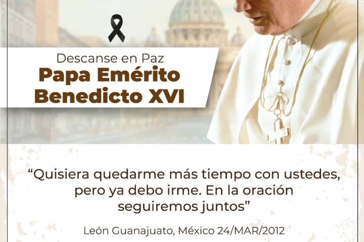 NOTICIAS 31/12/2022Conferencia del Episcopado Mexicano, lamenta la muerte del Papa Emérito Benedicto XVILa Conferencia del Episcopado Mexicano expresa sus ma?s sentidas condolencias ante la triste noticia del tra?nsito de nuestro amado Papa Eme?rito Benedicto XVI que ha sido llamado a la casa del Padre para entrar en su presencia.