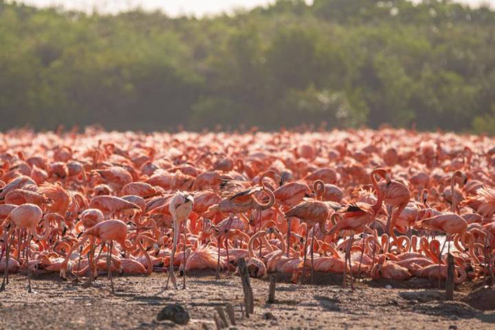 NOTICIAS 18/07/2022La Costa Norte de Yucatán recibe a miles de flamencos para su temporada de anidaciónEn un hecho poco común, más de 20 mil flamencos americanos eligieron la Reserva Estatal Ciénagas y Manglares en el puerto de San Crisanto, un punto de la costa norte de Yucatán, para su temporada de anidación, por lo que el Gobierno de Mauricio Vila Dosal, en coordinación con otras instancias federales y la comunidad de ese lugar, realizan acciones para asegurar la protección de estas aves emblemáticas y su etapa de reproducción.