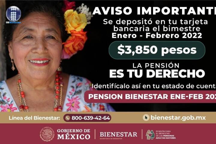 NOTICIAS 02/02/2022En marzo, adultos mayores recibirán un bimestre adelantado de su pensión, derivado de la veda electoralDebido a la consulta popular para revocación de mandato y a los procesos electorales que se llevarán a cabo en el país, la Secretaría de Bienestar encabezada por Ariadna Montiel Reyes, informó que en marzo se adelantará el pago de dos bimestres de la Pensión para el Bienestar de las Personas Adultas Mayores.
