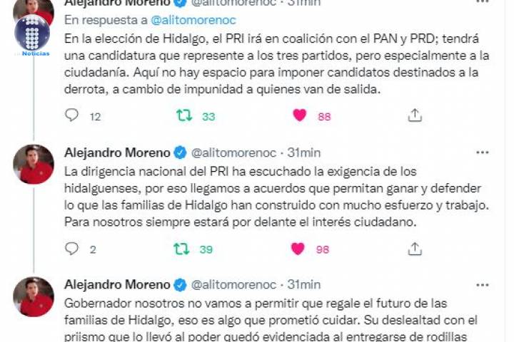 El Partido Revolucionario Institucional (PRI) no va a permitir que el gobernador Omar Fayad regale el futuro de las familias de Hidalgo. "Eso es algo que prometió cuidar. Su deslealtad con el priismo, que lo llevó al poder, quedó evidenciada al entregarse de rodillas con el gobierno de Morena", aseguró el Presidente del Comité Ejecutivo Nacional (CEN) de este instituto político, Alejandro Moreno. En respuesta a las críticas del mandatar...