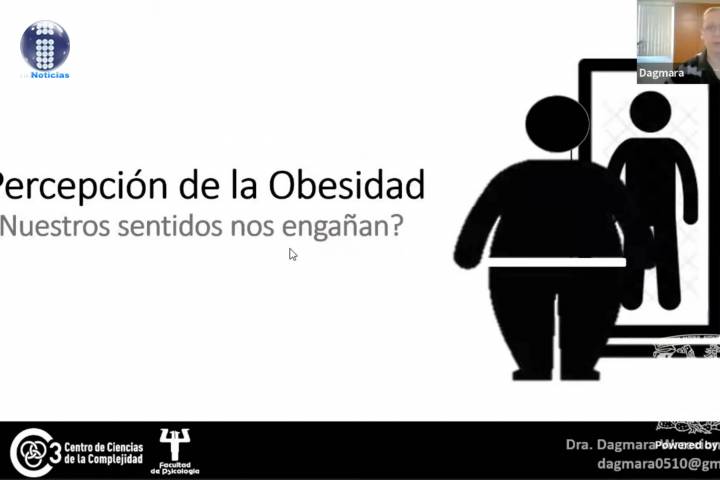 NOTICIAS 09/12/2021Obesidad y sobrepeso agudizan las enfermedades crónicasNo percibir que tenemos kilos de más, podría implicar una falta de acción para bajar de peso y un consecuente deterioro de la salud. Aunque no es tarea fácil, debemos alcanzar un peso saludable, sobre todo en el caso de las mujeres para evitar enfermedades, como el cáncer de mama y la disminución de años de vida, apuntó la académica de la Facultad de Ciencias Políticas y Sociales (FCPyS) de la UNAM, Dagmara Wrzecionkowska.