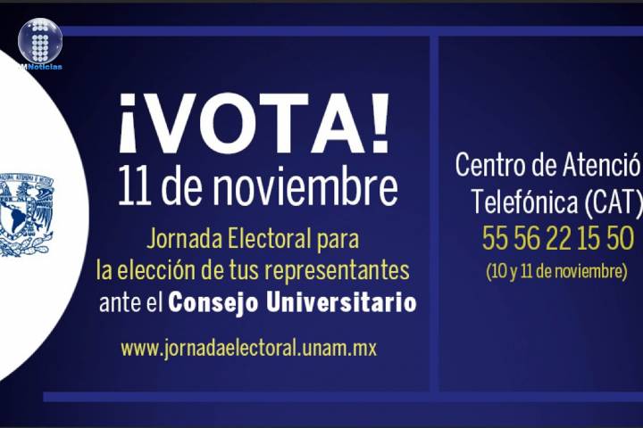 NOTICIAS 10/11/2021Con voto electrónico, universitarios eligirán a sus representantes del CUMediante voto universal, libre, directo y secreto, a través del sufragio electrónico, las y los universitarios elegirán, mañana jueves 11, a 258 nuevos integrantes del Consejo Universitario (CU) -máximo órgano colegiado de la UNAM-, quienes representarán a las escuelas, facultades e institutos de la Universidad Nacional.