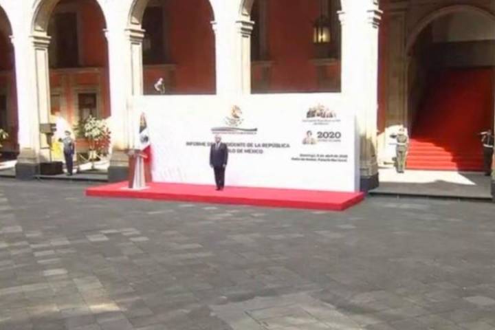 NOTICIAS 05/04/2020Lo que dijo AMLO en Palacio NacionalAndrés Manuel López Obrador en la soledad de uno de los patios de Palacio Nacional en la Ciudad de México ha ofrecido un mensaje a la nación con motivo de su informe trimestral.