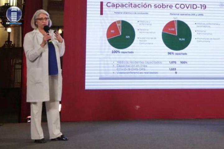 Gisela Lara Saldaña, titular de la Unidad del Programa IMSS Bienestar, señaló que 100 por ciento del personal de salud que se ubica en los hospitales y comunidades de alta marginación e indígenas ya está capacitado para la reconversión hospitalaria y atención durante la contingencia Sanitaria por Covid-19.