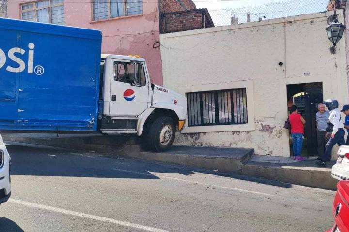 NOTICIAS 05/03/2025Camión fresquero choca contra banqueta y casa al norte de Morelia Un camión repartidor de la empresa Pepsi chocó contra una banqueta y la fachada de una casa tras aparentemente fallarle los frenos cuando circulaba cuesta abajo sobre la avenida Héroe de Nacozari, al norte de Morelia, comentaron fuentes allegadas al tema.