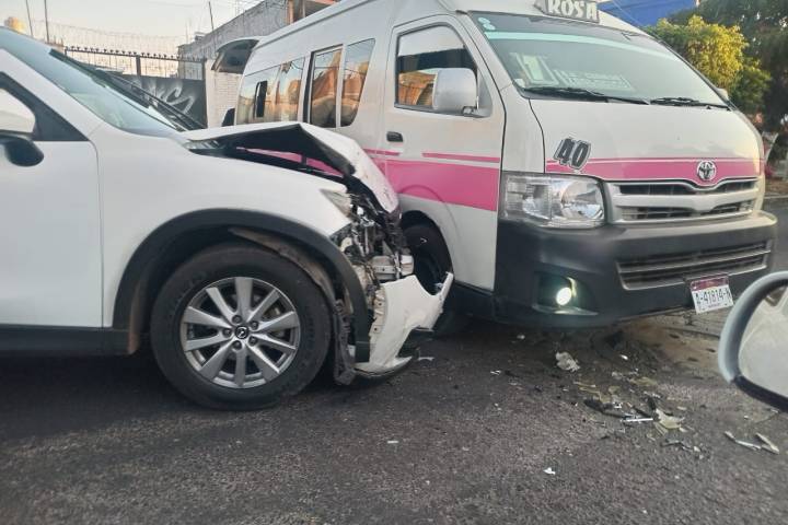NOTICIAS 09/02/2025Camioneta choca contra combi en la colonia Lomas del Tecnológico, al norte de Morelia Una camioneta chocó contra una combi de la Ruta Rosa 1 en la colonia Lomas del Tecnológico, ubicada en la zona norte de Morelia. Afortunadamente no hubo personas lesionadas, solo daños materiales, comentaron autoridades policiales.