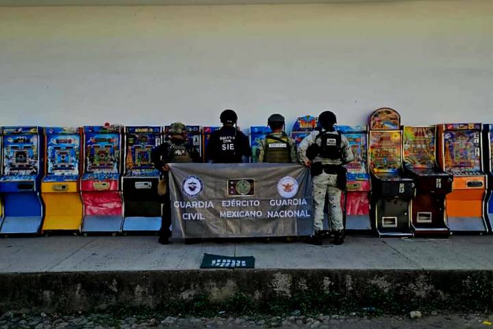 Durante un operativo interinstitucional en el que participaron elementos de la FiscalÃa General del Estado (FGE), la SubsecretarÃa de Investigación Especializada (SIE) de la Guardia Civil, Ejército Mexicano y Guardia Nacional, fueron incautadas 16 máquinas tragamonedas y 24 dosis de droga sintética en el municipio de Apatzingán.
