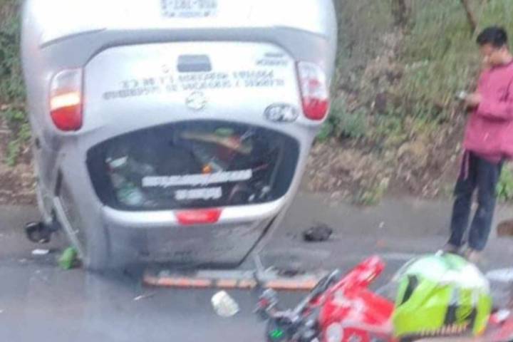 Un auto volcó sobre la avenida Rey Tangaxoán II, al sur de Morelia, accidente en el que estuvo involucrada una motocicleta y una persona resultó lesionada, comentaron autoridades policiales.