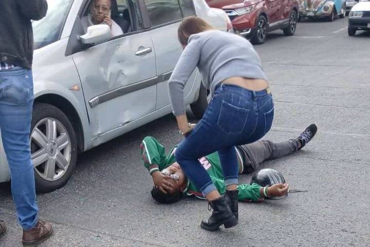 El percance se reportó en la esquina de las calles Michoacán y California, donde colisionaron el motociclista y un auto Renault, de color gris, por lo que algunos testigos informaron a los sistemas de emergencia.