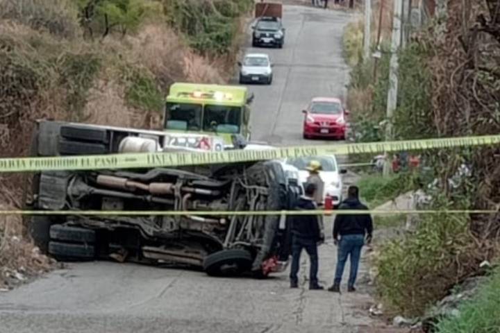 El conductor de un tráiler cargado con varias toneladas de aguacate milagrosamente resultó solo con posible fractura en un pie y una mano, tras quedar prensado luego de que presuntamente se quedó sin frenos y volcó en esta demarcación de Jacona.