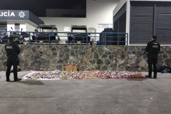 El material se encontraba a la venta en 9 puestos, los cuales no pudieron acreditar los permisos correspondientes por lo que se procedió al aseguramiento de aproximadamente 400 kilogramos de fuegos artificiales.