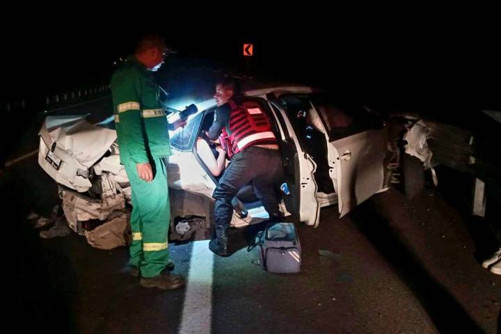 El percance tuvo lugar en el kilómetro 148 del tramo carretero Cuatro Caminos – Santa Casilda, tras impactar contra una banda metálica de contención terminó destrozado un vehículo Volkswagen Vento de color blanco con plac... Ver más...