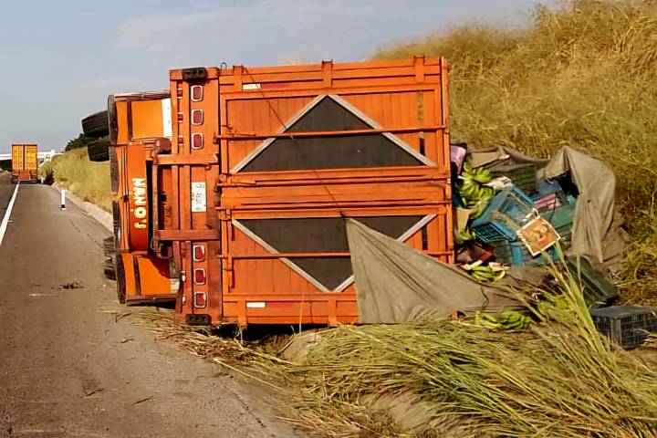 Camión platanero vuelca en la autopista Siglo XXI