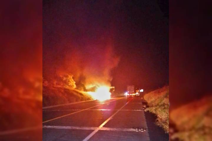 Un camión de carga ardió en llamas al circular en la autopista Siglo XXI, incidente que no dejó personas heridas, únicamente daños materiales, según informaron las autoridades. El siniestro se registró la noche de este lunes, en el kilómetro 152+000, del tramo carretero Santa Casilda – Nueva Italia, en las cercanías de la desviación a Cuatro Caminos, donde el chofer de un torton al percatarse que de su unidad salía humo se orill...