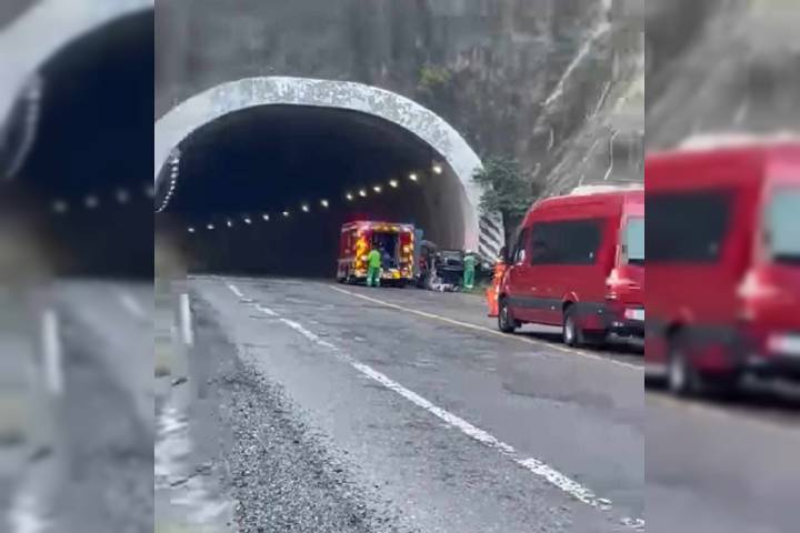 El percance fue en el kilómetro 229+900. Según testigos, una camioneta perdió el control y se estrelló contra el acotamiento del túnel, quedando completamente destrozada.