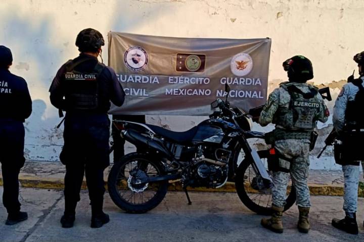 NOTICIAS 25/10/2024Delincuente abandona moto robada, se apodera un cuatrimoto y huye; la policÃa recupera ambas unidadesUn delincuente que viajaba en una moto con reporte robo, despojó con violencia de su cuatrimoto a un civil y huyó, tras un despliegue operativo de la Guardia Civil, Guardia Nacional y Sedena, ambas unidades fueron aseguradas.