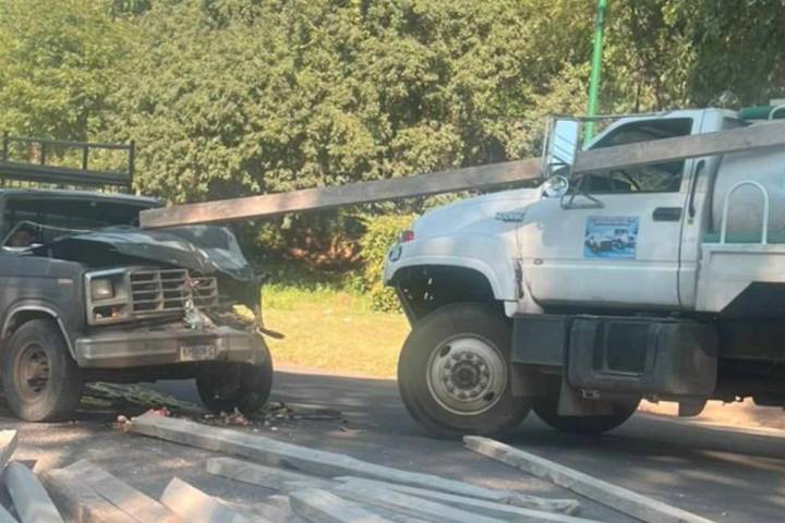 Una camioneta que transportaba madera y un camión pipa de agua protagonizaron un choque sobre la Antigua Carretera a Pátzcuaro, incidente que solo dejó daños materiales, comentaron autoridades policiales.