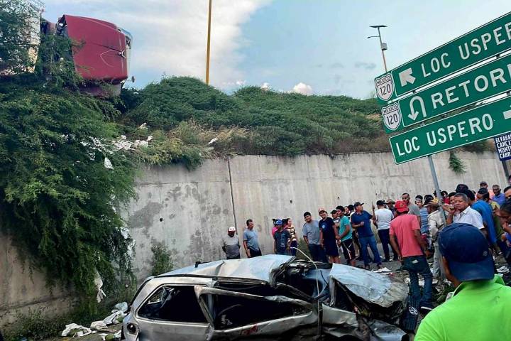 NOTICIAS 19/10/2024Auto cae de puente tras choque con camión papayero; hay 4 heridos