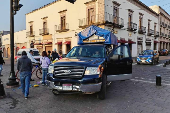 NOTICIAS 14/10/2024Camioneta embiste triciclo tamalero en el Centro Histórico de Morelia El conductor de una camioneta, aparentemente bajo los efectos de bebidas embriagantes, se impactó contra un triciclo de tamales en el Centro Histórico de Morelia, informaron fuentes allegadas al tema, las cuales agregaron que por fortuna no hubo lesionados.
