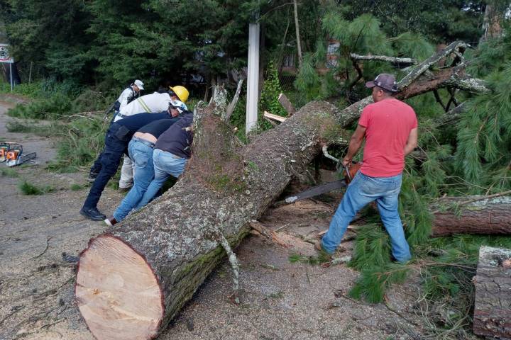 El incidente fue cuando el árbol, probablemente debilitado por las recientes lluvias, cayó sobre la carretera, bloqueando ambos carriles. Un auto compacto de color blanco que circulaba por la zona no pudo ev... Ver más...